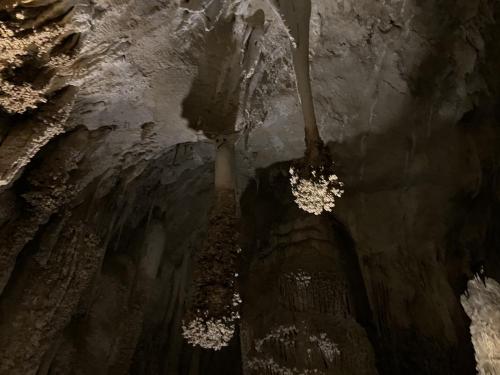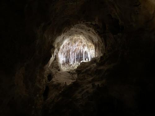 The Cavern was so amazing! We walked down the 1.25 mile Natural Entrance Trail, dropping down 750 feet⎯equivalent to a 75-story building. It took us about an hour, with all the stopping and gawking, to get down to the Big Room. We spent another 1.75 hour walking through the Big Room, another 1.25 mile but with more stopping, oohs and aahs, and pics. We’ve all become accustomed to the lack of humidity and warm sun of New Mexico, so we were prepared for the caverns to be chilly. But they didn’t feel so chilly because it was so humid…I have never experienced a cold sweat without being ill. It was definitely a wild experience, for our eyes and for our bodies.
